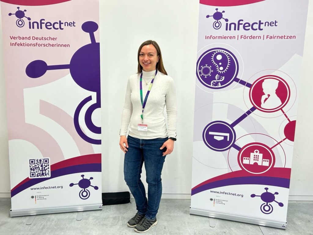 Ihre Infect-Net-Kolleginnen Prof Dr Gabriele Pradel von der RWTH und Dr Anna Bachmann vom BNITM freuten sich mit ihr über die Auszeichnung. Beide Malaria-Forscherinnen erhielten in der Vergangenheit ebenfalls den GDP-Nachwuchspreis. Gabriele Pradel in 2010 und Anna Bachmann in 2021.
