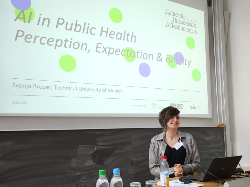 In einer Zeit, in der der Einfluss von Künstlicher Intelligenz (KI) auf unser Berufs- und Privatleben immer mehr wächst, klärte uns Svenja Breuer, Doktorandin am Munich Center for Technology in Society (MCTS) der TUM, über die Chancen und Risiken von KI im Gesundheitswesen auf. Sie gab uns einen fundierten Überblick über die verschiedenen Einsatzmöglichkeiten von KI im Gesundheitsmanagement und präsentierte beeindruckende Beispiele aus der radiologischen Praxis.