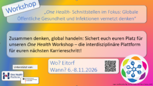 Bereit, über den Tellerrand eures eigenen Fachbereichs hinauszuschauen? Infektionsmedizin endet nicht an der Kliniktür – sie findet an der Schnittstelle von Mensch, Tier und Umwelt statt!